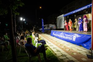 Bursa Büyükşehir Belediyesi’nin ‘Sanat Mahallemde’ etkinlikleri kapsamında mahalle mahalle gezen sahneye dönüşen TIR’ın rotası bu kez Ertuğrul Mahallesi oldu. Ertuğrul Mahallesi sakinleri açık havada Geleneksel Türk Tiyatrosunun anonim örneklerinden Eskici Abdi adlı orta oyunu metninden derlenen Eskici adlı oyunu büyük bir keyifle izledi.